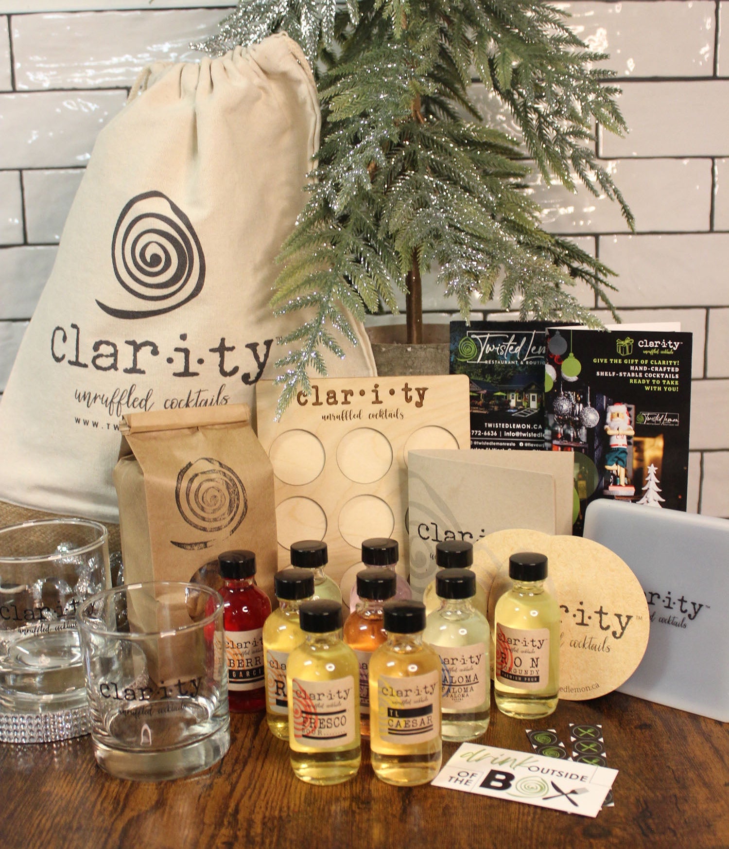 The Clarity Cocktail line is committed to having the smallest environmental footprint possible by using environmentally conscious products and packaging with no straws, picks or plastic bags! With as close to zero ingredient waste as possible, cocktail bi-products are creatively used in the Twisted Lemon kitchen to make flavour-full ice creams, cheesecakes, savouries and so much more!