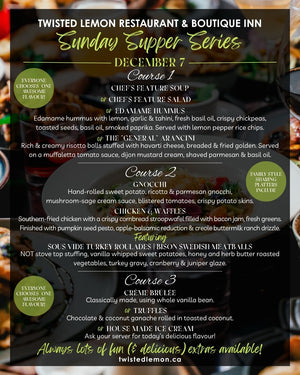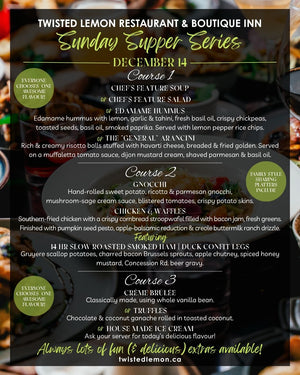 "Worth the drive! The food is passionately prepared and absolutely delicious. The menu is unique with exquisite options. Chef Dan took the time to visit every table. We’ve travelled all over the world and Twisted Lemon is still one of our favourite dining restaurants. This is place deserves all the stars."